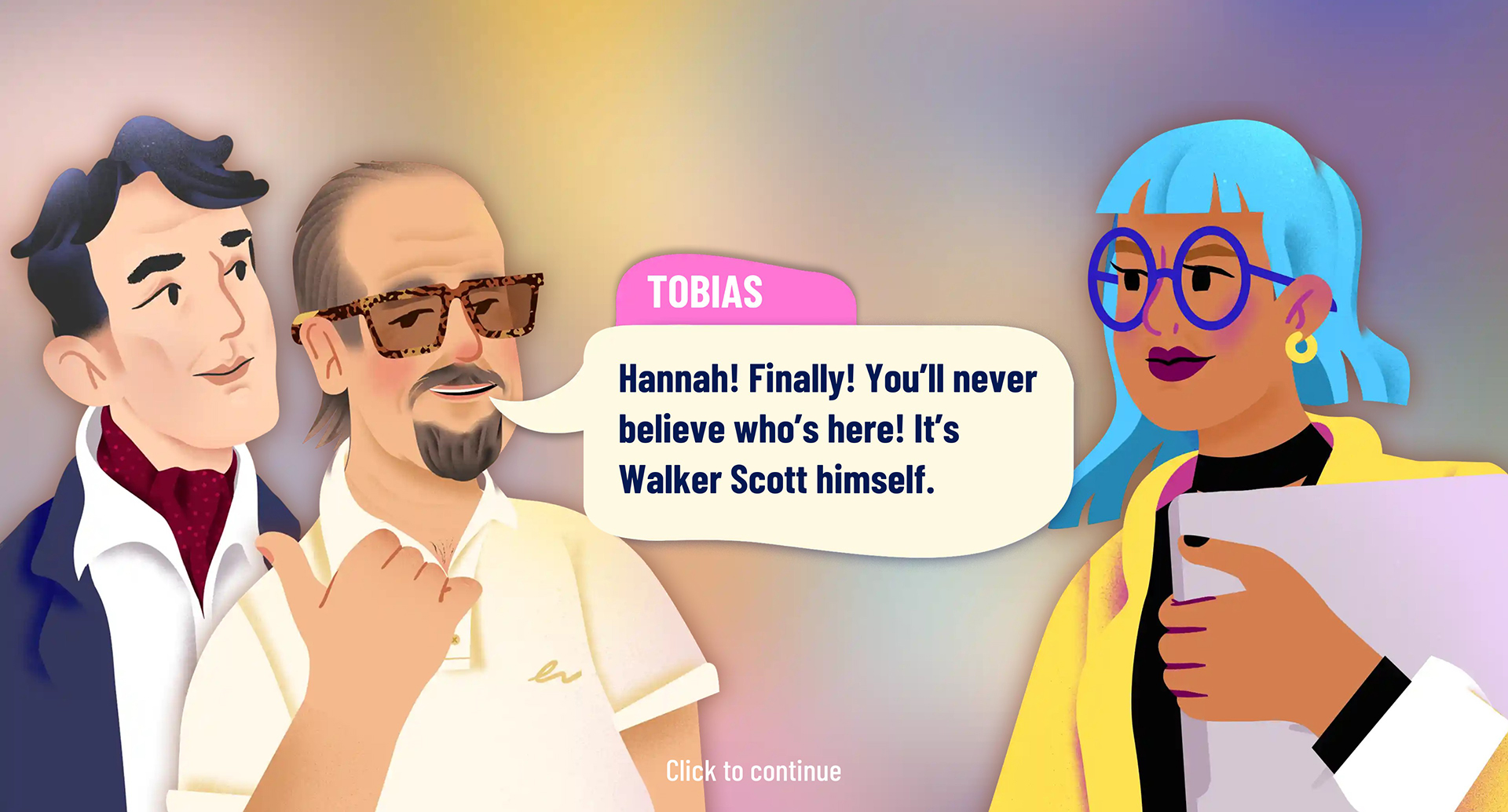 The titular protagonist, Hannah, is 39 years old with ‘terrific hair and a coffee addiction’. Having previously dreamt of being a performance artist, she is disillusioned with her job as a graphic designer. The game follows Hannah as she navigates this mid-life crisis and in doing so also explores the relationships she has with those around her, such as her best friend and ex, her mother and her grandmother. The narrative touches on some serious subject matter such as neglect, environmental issues, WWII, and the Holocaust but handles them sensitively and does not bring them to the forefront of the story.